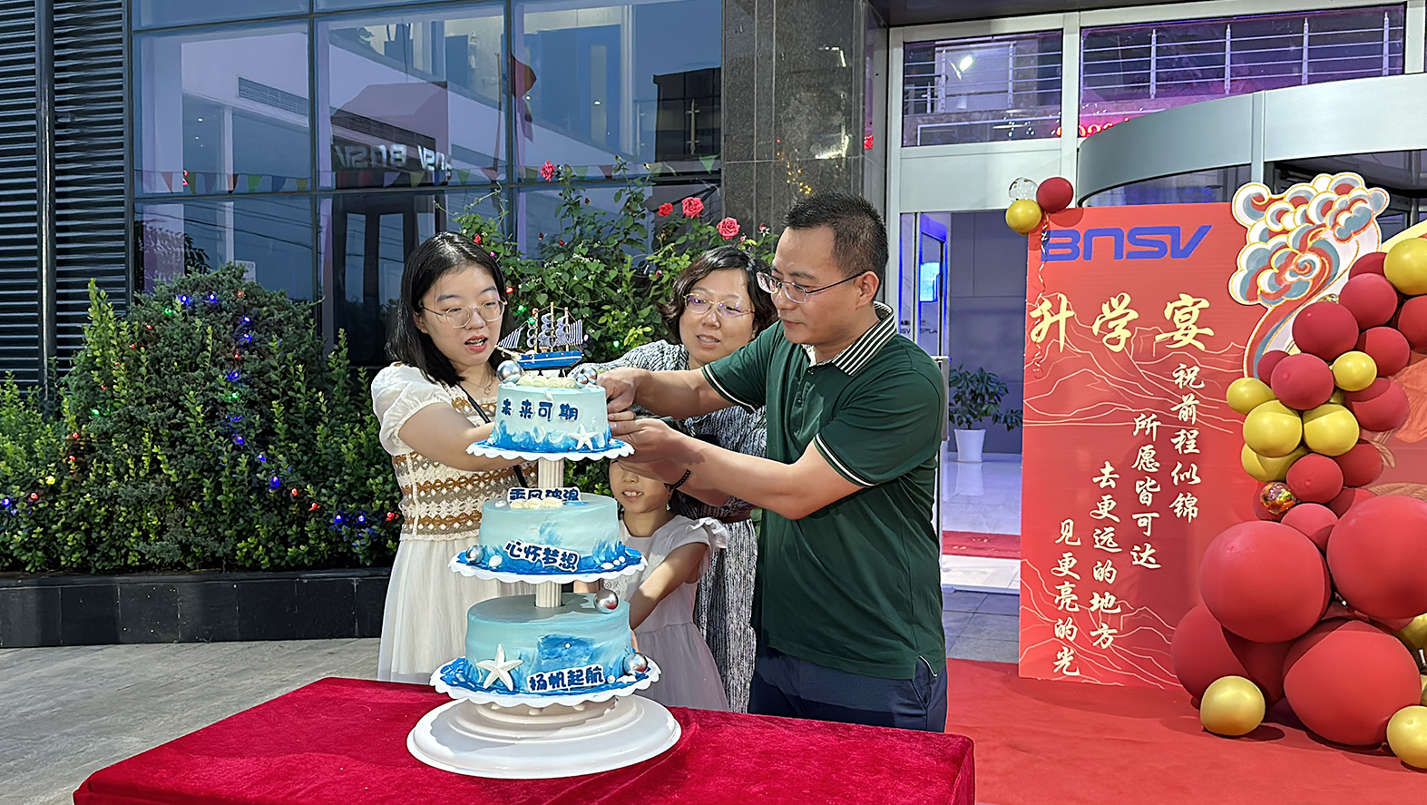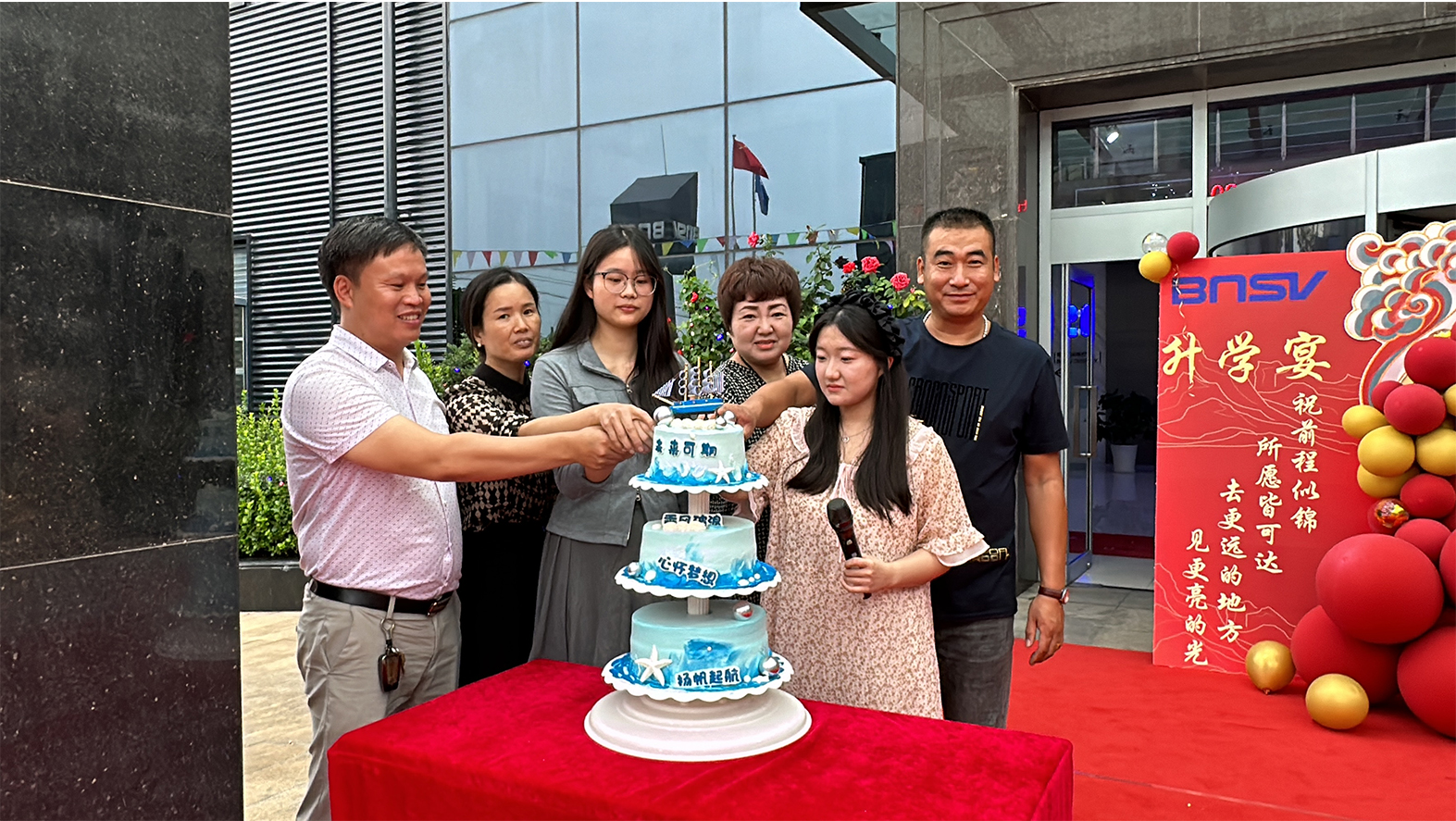 近日為了祝賀我公司三名員工洪炳達、裴娟娟、單朦的女兒洪采妮、魏暢、單雪雅,以優(yōu)異的成績考取了理想的大學,特在公司廠區(qū)內舉辦盛大的升學宴,公司全體員工及孩子們的家人們共同為她們慶祝,分享一份金榜題名的喜悅,品嘗一份收獲成功的甘甜、保存一份溫馨難忘的記憶。