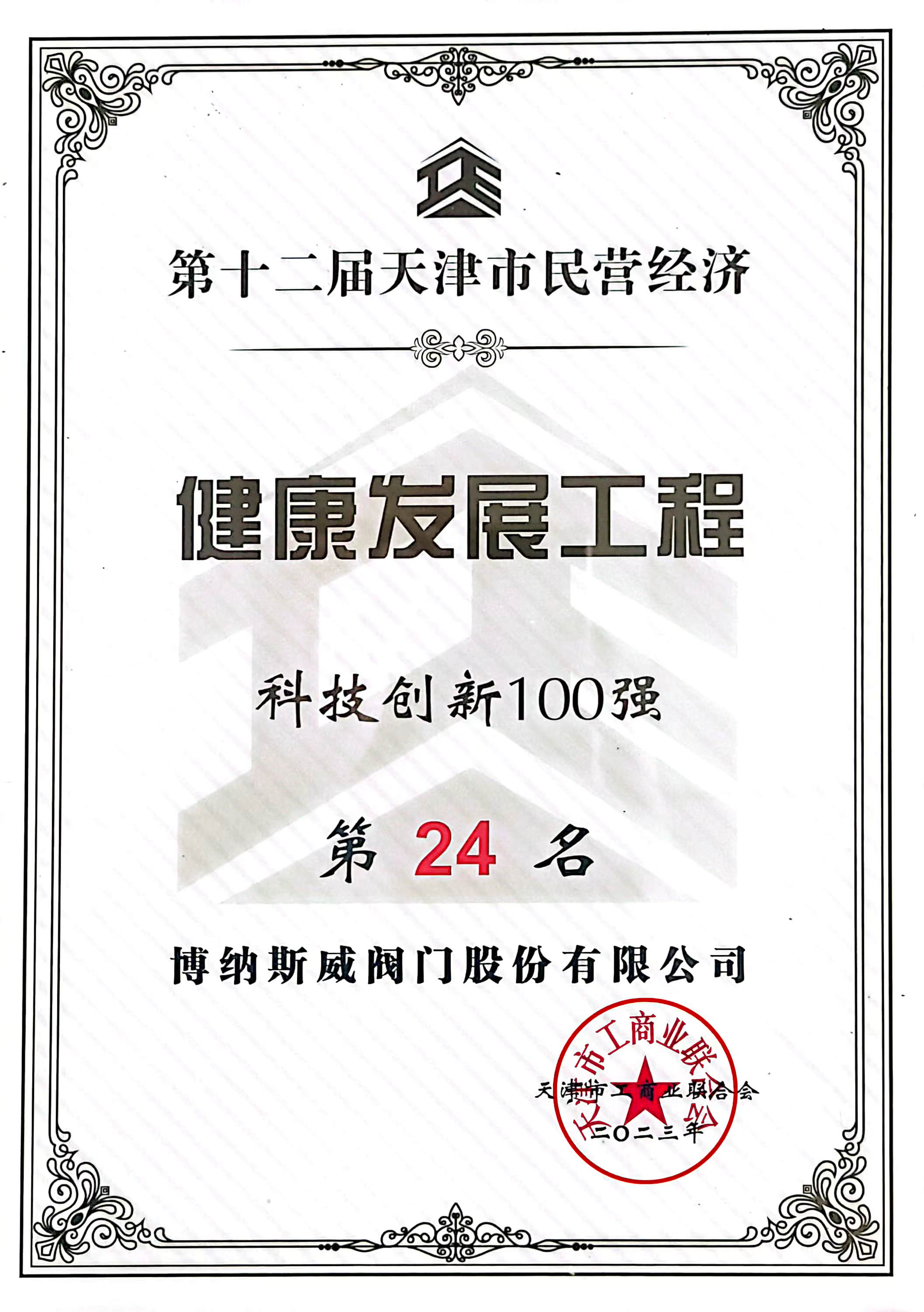 近日,由天津市人民政府、科學(xué)技術(shù)部、全國(guó)工商聯(lián)共同主辦的2023中國(guó)民營(yíng)企業(yè)投融資洽談會(huì)在天津隆重開幕。開幕式期間,舉行了第十二屆天津市民營(yíng)經(jīng)濟(jì)健康發(fā)展工程發(fā)布會(huì),共發(fā)布五項(xiàng)榜單,博納斯威閥門股份有限公司榮列科技創(chuàng)新百?gòu)?qiáng)第24名。