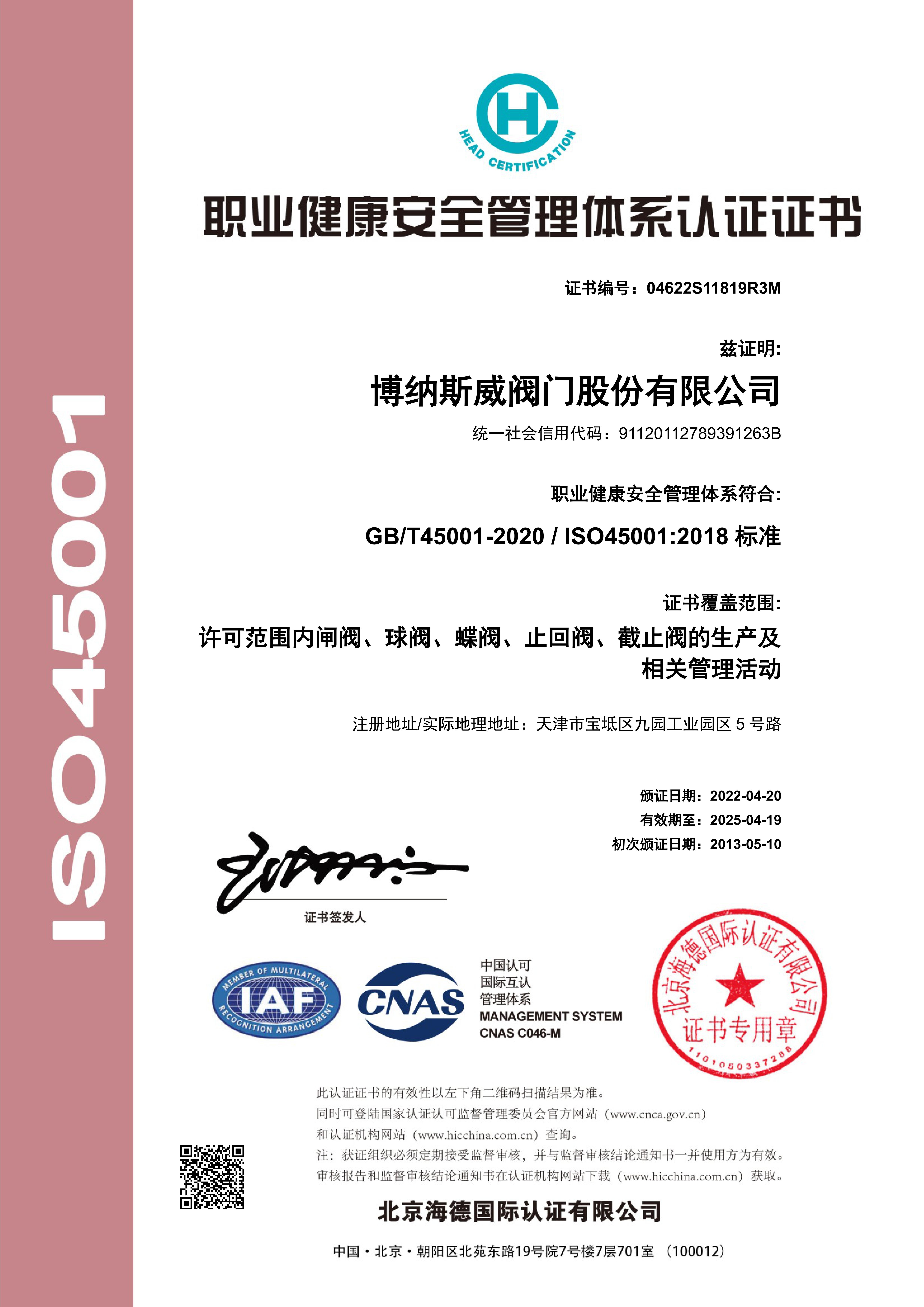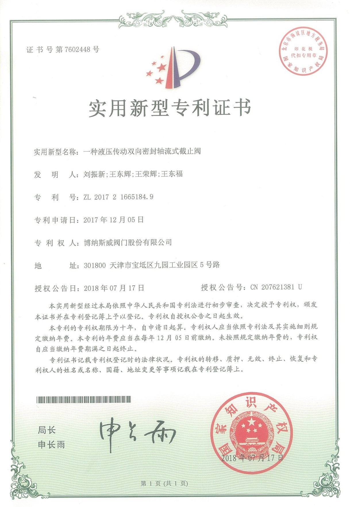 公司先后通過ISO9001質量管理體系、ISO14001環境管理體系、GB/T45001職業健康安全管理體系、歐盟CE等認證,榮獲“高新技術企業”、“國防特種閥門研發中心”、“天津市企業技術中心”等榮譽。公司與武漢大學、長沙理工大學、華北水利水電大學廣泛開展產學研合作。潛心投入也結出累累碩果:獲得200余項專利技術,主編、參編國家和行業標準10多項,在業內重要期刊發表10余篇論文,榮獲中國機械工業科學技術獎1項。