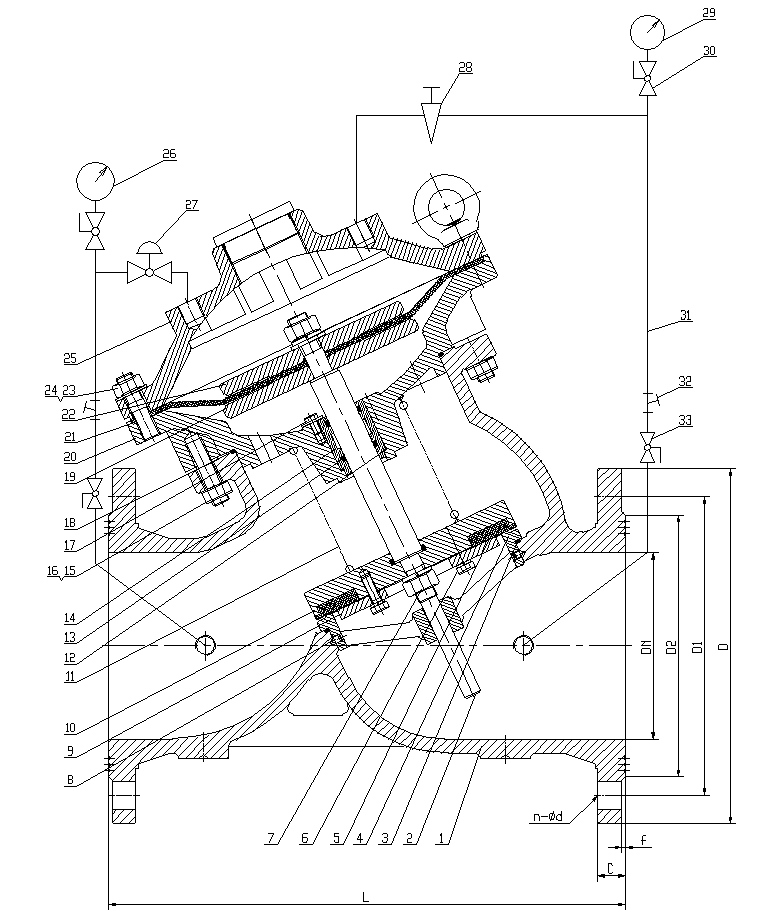 本產(chǎn)品適用工礦企業(yè)、高層建筑、生活用水、消防用水系統(tǒng)中使用,需要減靜壓和動壓的場合可以取代中間水箱,節(jié)約建筑中間水箱的費用,擴大建筑物使用的空間。閥體采用流線型設(shè)計,流體阻力小,流量大。在傳動方式上采用了水力操作,即利用管路中的水壓自動操作主閥盤的上下移動,控制閥口開度,調(diào)節(jié)下游壓力,使下游壓力維持在導閥彈簧設(shè)定的壓力值上。當下游壓力超過設(shè)定值時,減壓閥將自動關(guān)閉,不管入口壓力P1怎樣波動,都可輸出穩(wěn)定的出口壓力P2。不管下游流量怎樣變化,都能維持出口壓力P2穩(wěn)定在導閥設(shè)定值上。出口壓力調(diào)節(jié)范圍大,且工作平衡,無水錘沖擊現(xiàn)象。