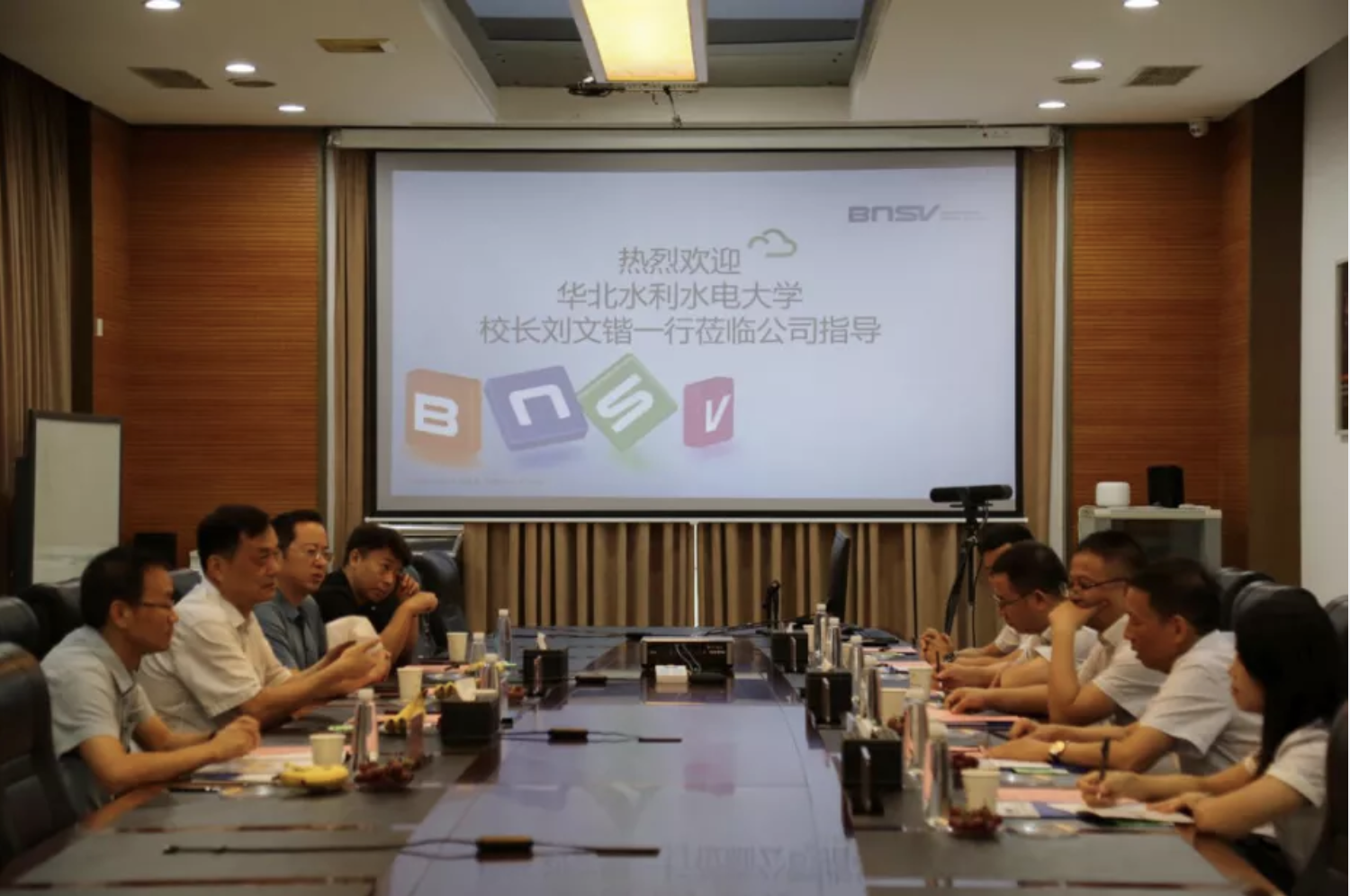 華北水利水電大學校長劉文鍇、辦公室主任尹彥禮、科技處處長上官林建、校友會劉悅,博納斯威董事長王東輝、總經理王榮輝、副總經理王天彪、總工程師廖志芳等出席了揭牌儀式及座談交流。