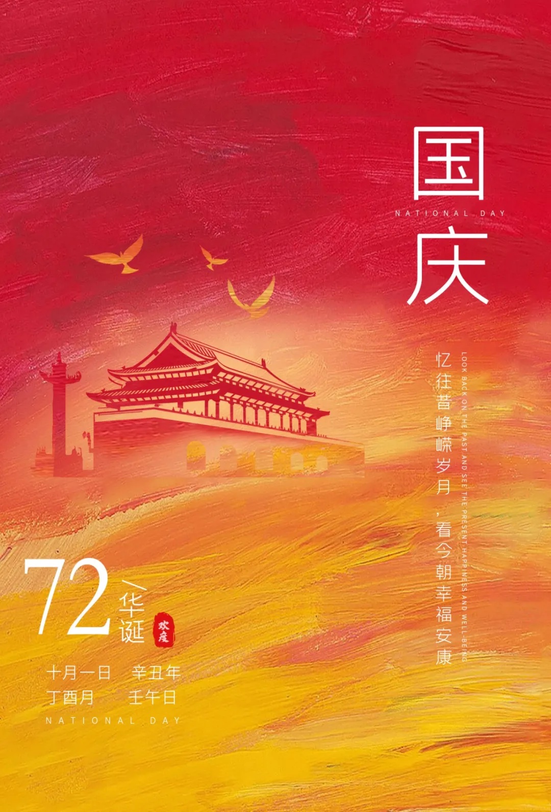 在這美好季節(jié),祖國的每一寸土地都活躍著甜蜜和興奮,洋溢著一片生機(jī),金秋十月,有著唱不完的頌歌,一頁頁日歷,記載著新中國累累碩果;有著道不盡的祝賀,一步步征程,閃爍著華夏兒女的汗水心血,在偉大祖國即將迎來72周年華誕之際,博納斯威全體員工共同祝愿我們偉大的祖國繁榮昌盛,人民幸福!